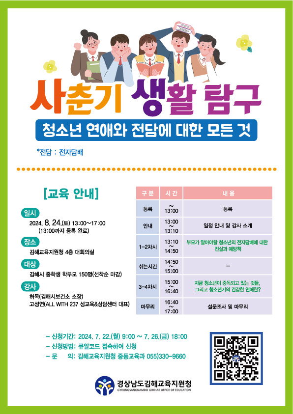 김해교육청에서 실시하는 학부모 대상 연수 안내입니다.