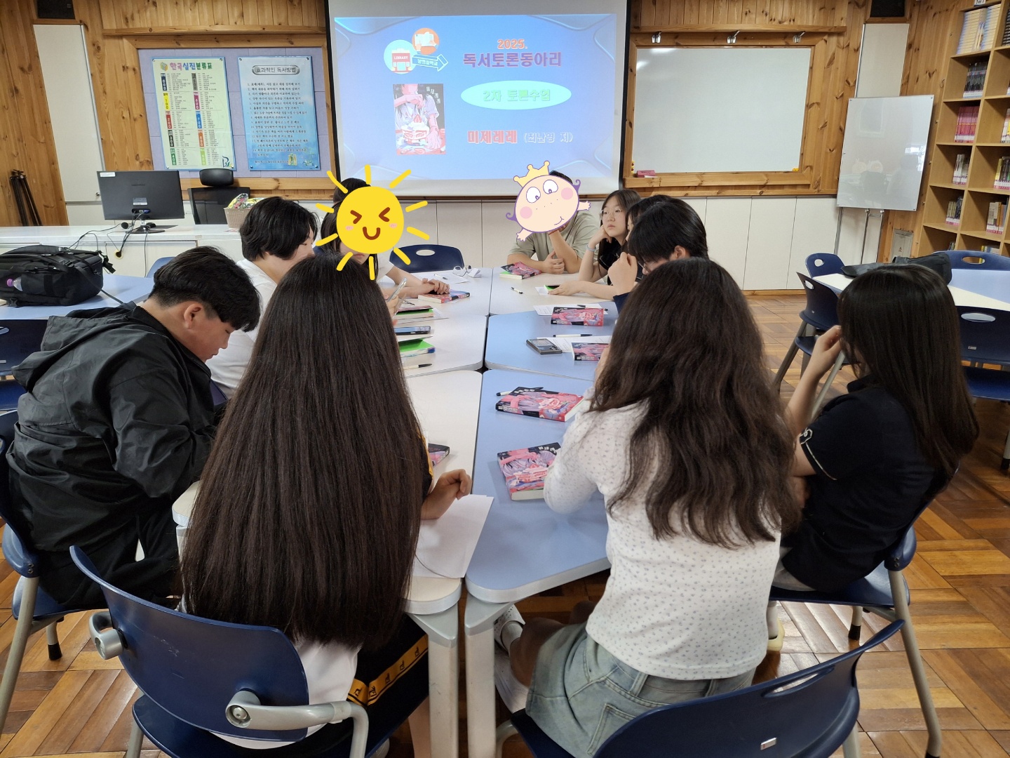 2025. 학생 독서토론동아리 2차 토론수업을 실시하였습니다. * 일시 : 2025. 6. 11.(수) 14:40~ * 장소 : 책누리지혜마루도서관 * 대상 : BMBC 독서토론동아리 학생 * 토론도서 : 미제레레 (최난영 지음 / 토마토출판) - 발제자 : 김*하 외 3명 - 책과 관련된 퀴즈 풀기 - 내게 다가온 문장 & 느낌 - 책 등장인물 파악 및 사건에 대한 문제 제기와 생각 나누기 - 다음번 독서토론도서 선정 및 방학중 독서계획 세우기
